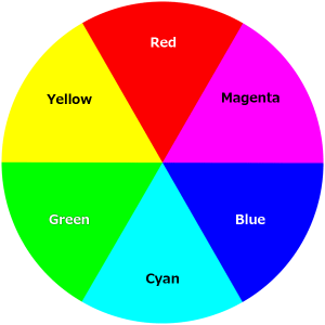 Red, green and blue are known as “three primary colors” of lights and when these all three colors are mixed the result is white. The colors that are pair of opposite side in the right “color circle” are called “complementary colors”. For example, red and cyan, green and magenta and blue and yellow are the pairs of complementary colors. When these two complementary colors are mixed together, it also makes white.